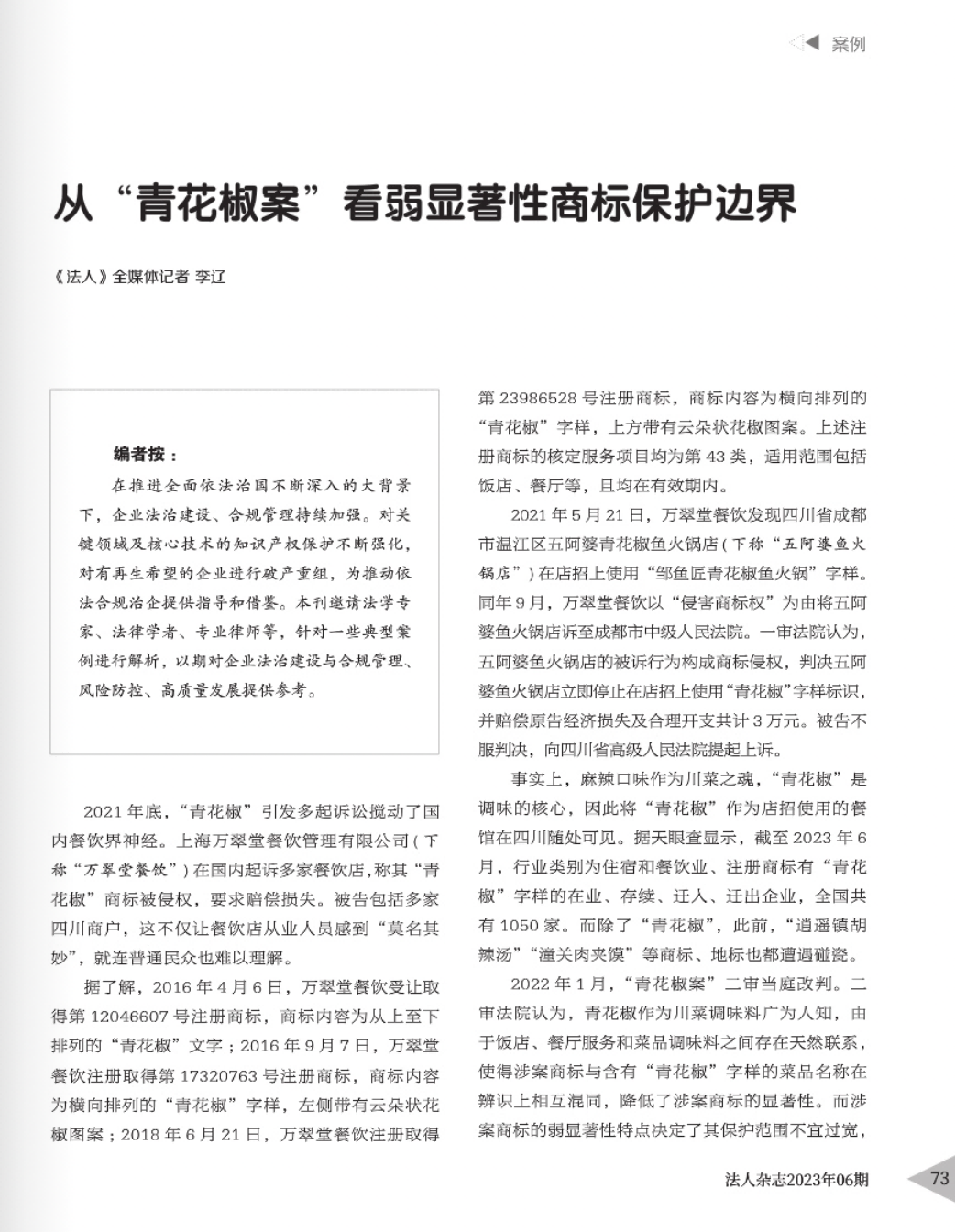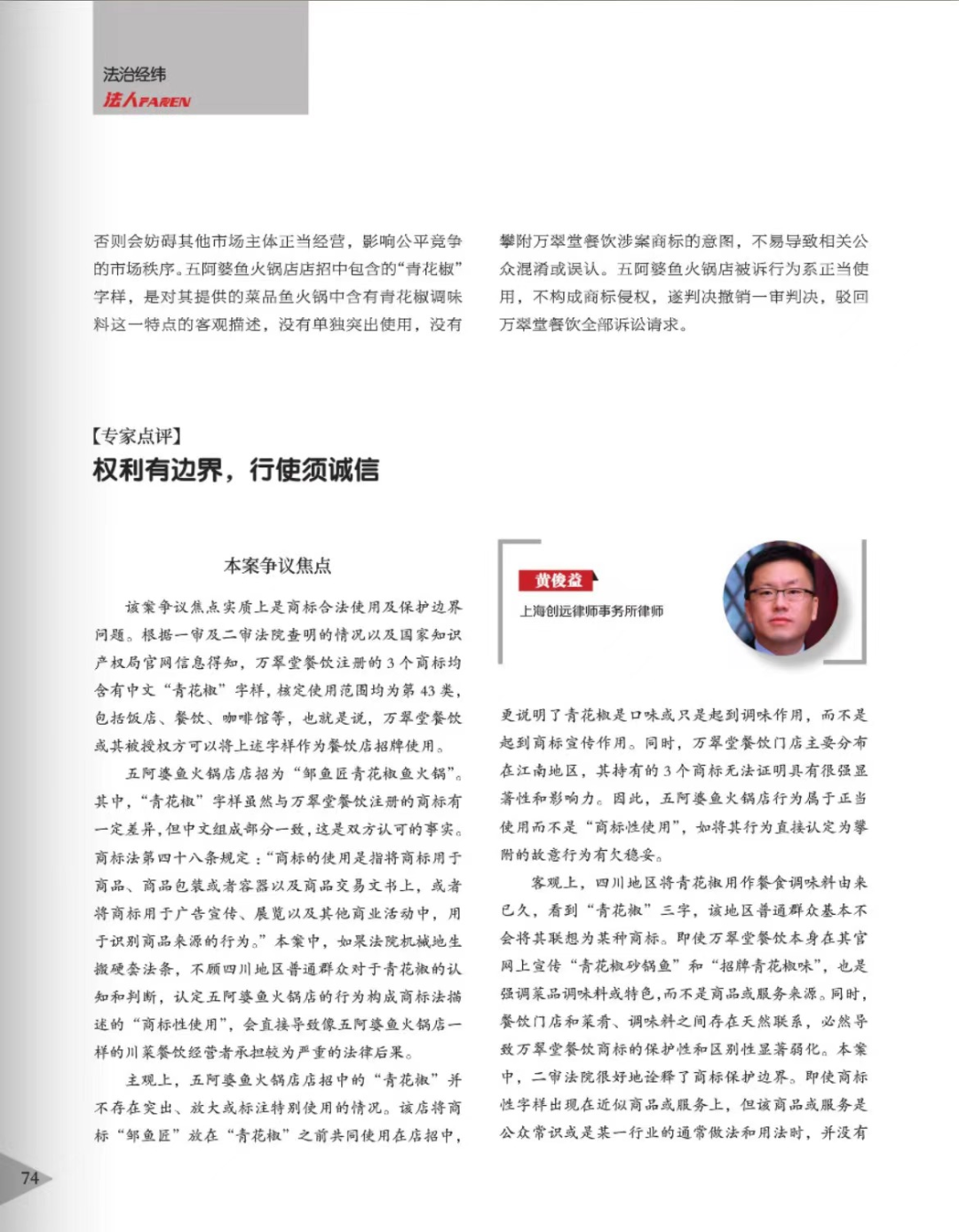 广西辉知简讯 | 辉知队黄俊益律师应“法治日报”旗下杂志邀请,就“青花椒”案发表专家点评