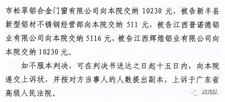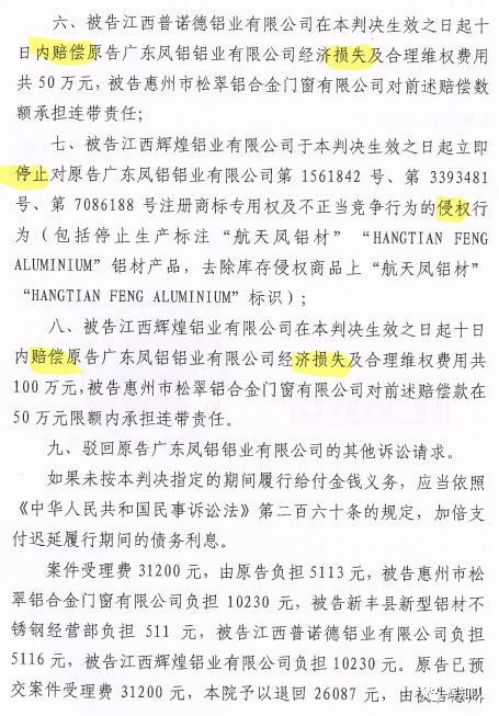 广西凤铝系列维权案:诉辉煌公司等四被告,法院判赔250余万